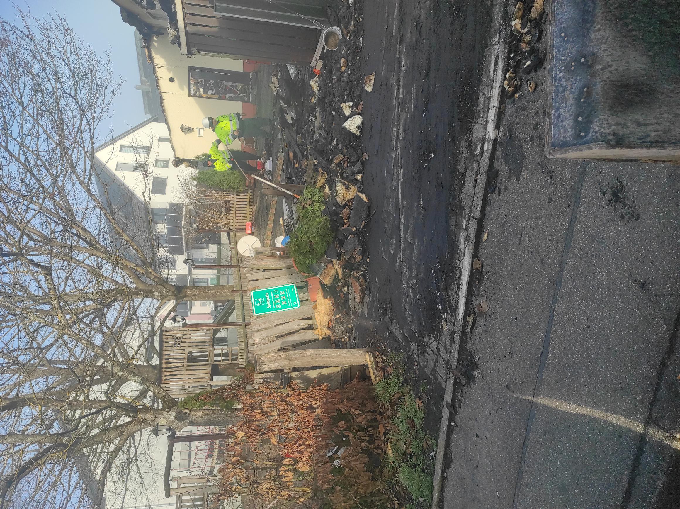 Aufräumarbeiten am Aussengelände